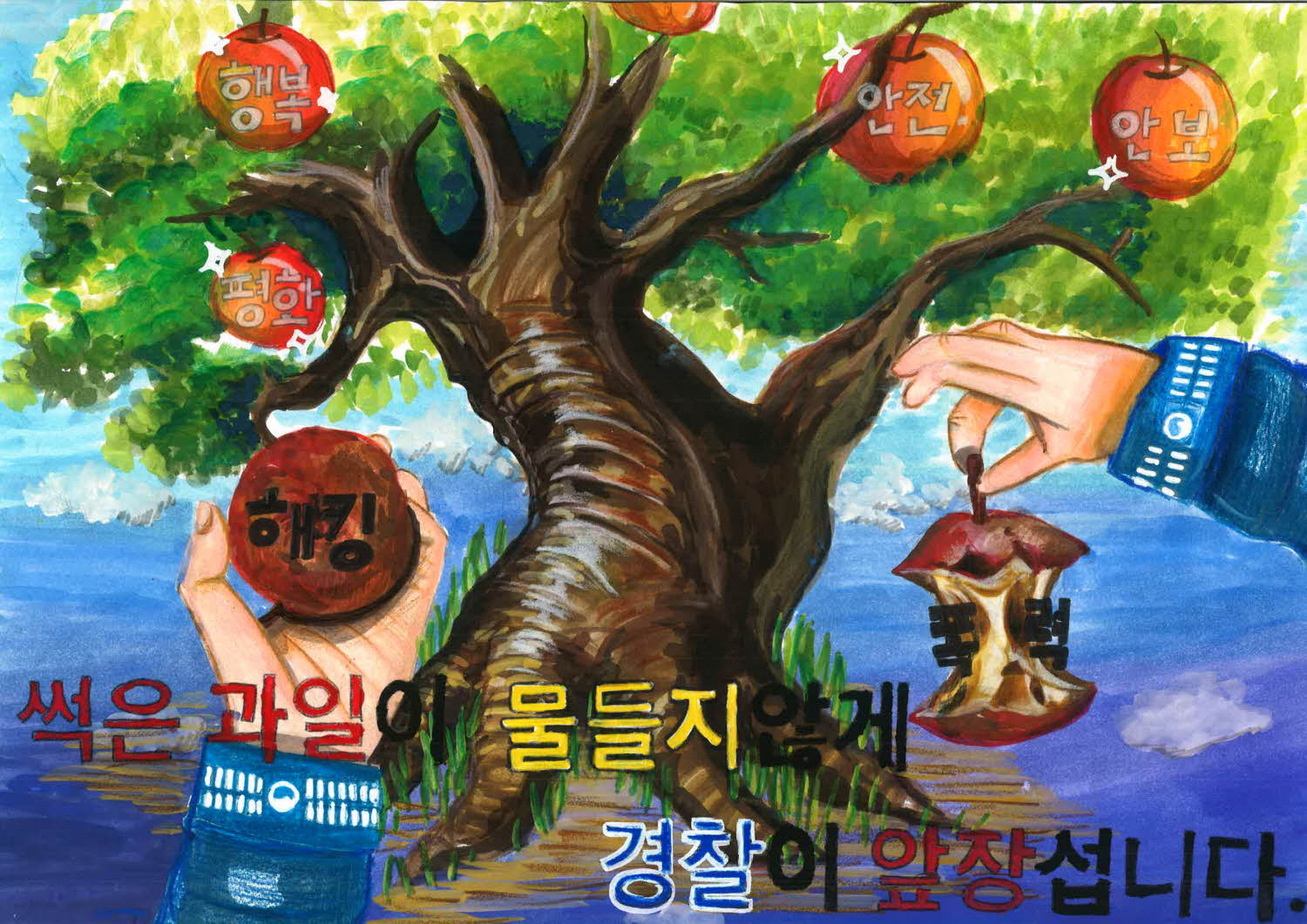 포스터 [초등부] [우수상] 썩은 과일이 물들지 않게 경찰이 앞장섭니다.